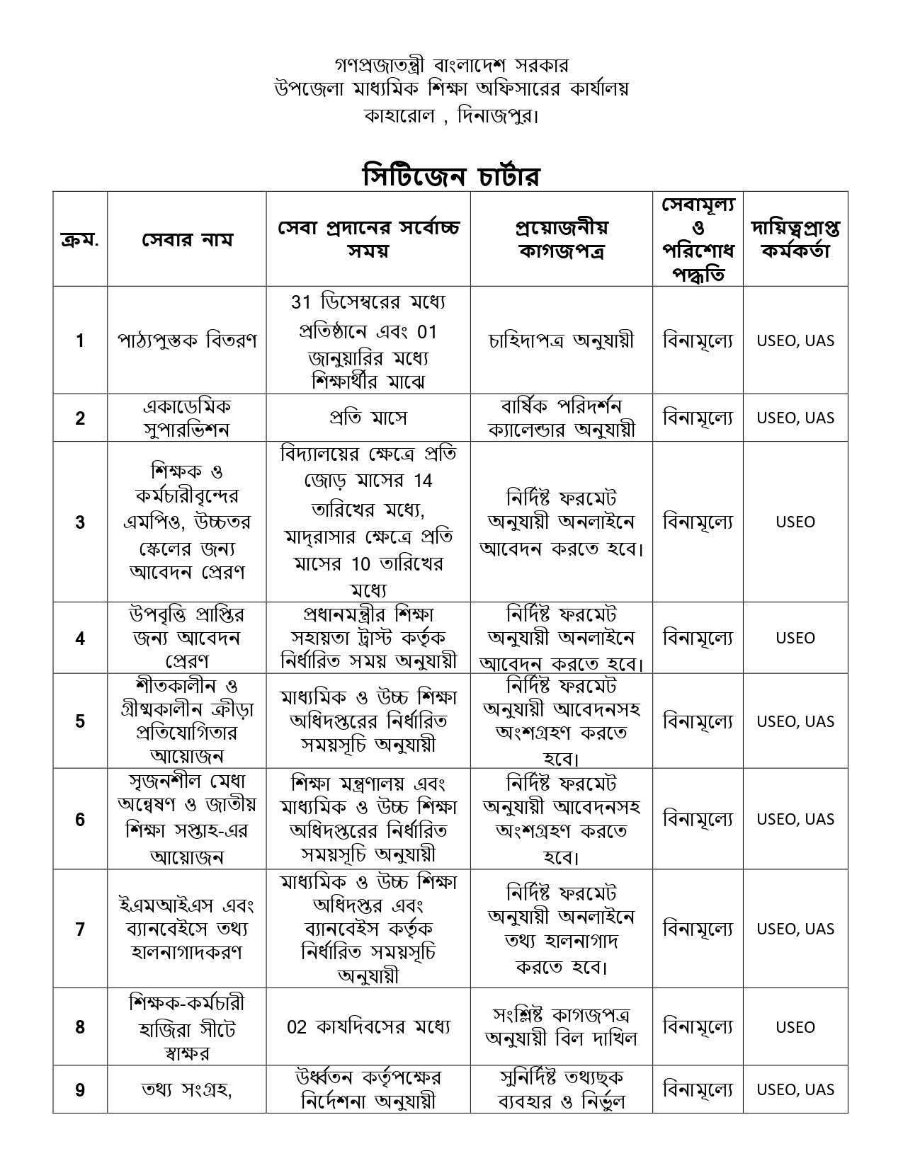 ১২. উর্ধ্বতন কতৃপক্ষের সকল নির্দেশনা বাস্তবায়ন করা।